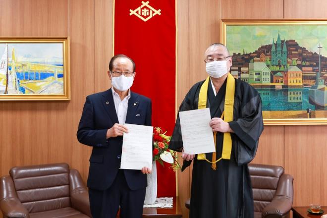 「佐世保仏教連合会」と「災害時における自主運営避難所施設としての使用に関する覚書」を締結しました