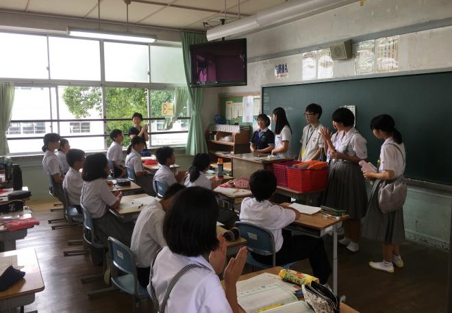 清水中学校訪問の様子 |