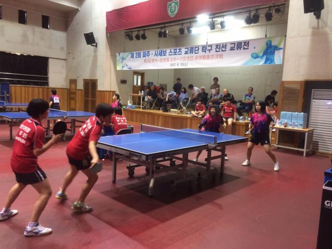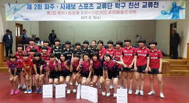 平成29年6月9日(金曜日)から11日(日曜日)にかけて、(公財)佐世保市体育協会主催により、姉妹都市である、韓国坡州(パジュ)市の中高生との卓球交流が行われました。