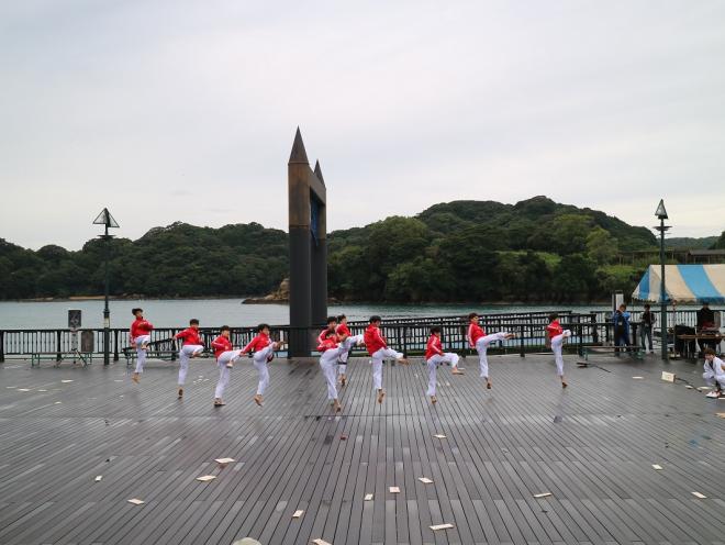 平成22年に初めて参加してから、今回で4回目の参加となり、九十九島パールシー会場と名切お祭り広場会場の2会場で迫力ある演舞を披露していただきました。