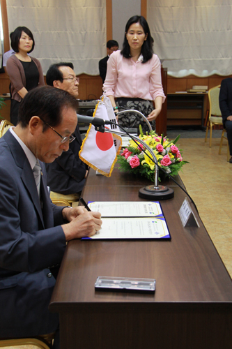 韓国・釜山広域市西区庁舎で行われた締結式の様子