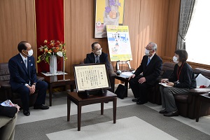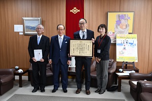 贈呈式では、市長から代表して「要約筆記佐世保び~どろ」会長の牛島徹様に、表彰状と記念品を贈呈され、お祝いの言葉を述べられました。