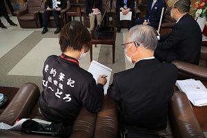 会長からは、要約筆記は手話に比べて認知度が低く、特に中途失聴者の人にとって重要なコミュニケーション手段の一つですので、今回の受賞を機に広く知り渡ればと述べられました。