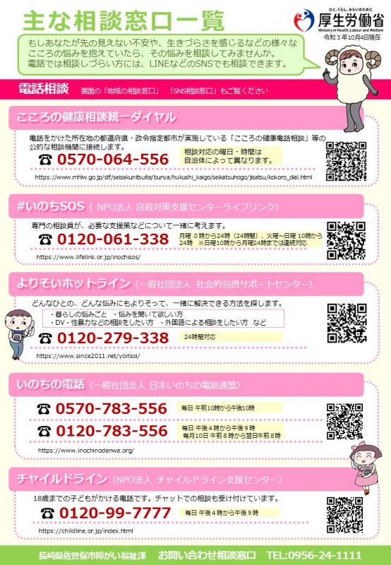 - 「長崎いのちの電話」「フリーダイヤル自殺予防いのちの電話」について