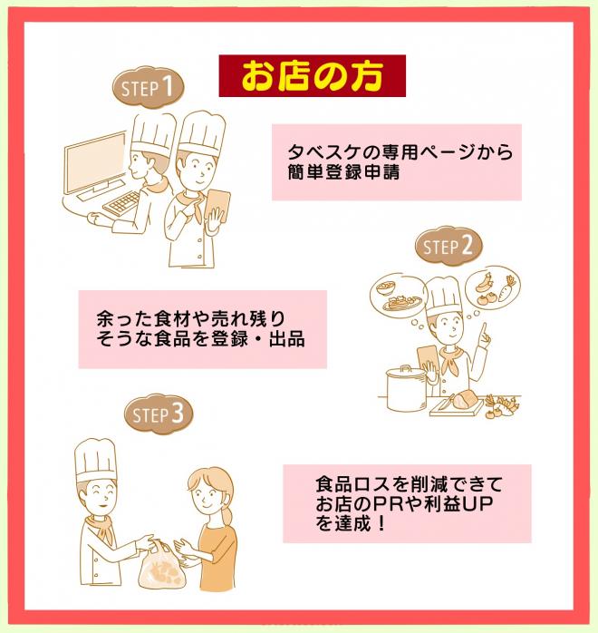 賞味期限や消費期限が近いために買い手がつかず、今までは捨てられていた食料品等を値段を下げて「サセボタベスケ」に登録し、販売するもので、商品を捨てずにすむので処分費用が抑えられて、一定の利益が確保できます。