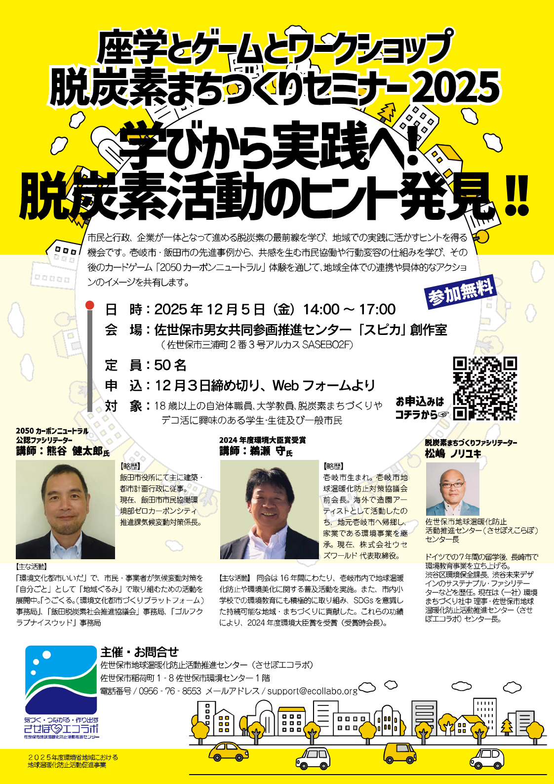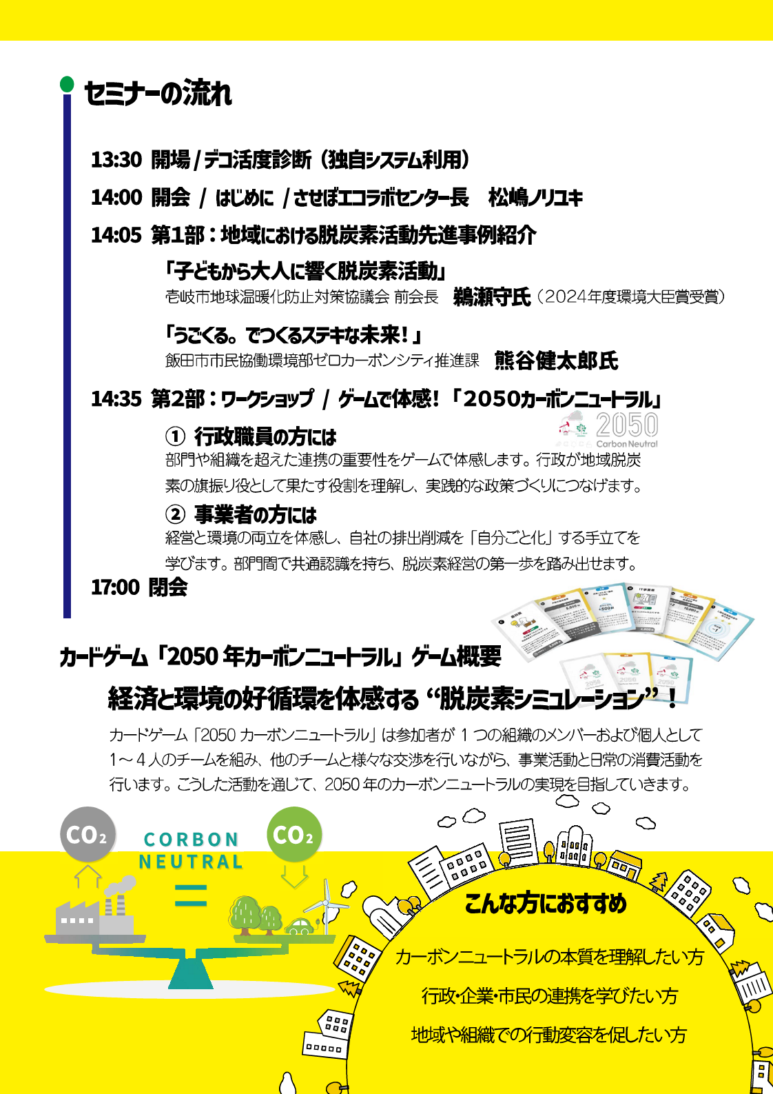 ホーム > まちづくり・環境 > ゼロカーボンシティ(脱炭素) > 【参加者募集】座学とゲームとワークショップ脱炭素まちづくりセミナー2025~学びから実践へ!脱炭素活動のヒント発見!!~