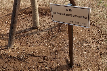令和4年11月28日に、旧佐世保市立成徳高等女学校同窓会の皆様から市制120周年及び女学校創立120周年を記念し、佐世保市に現金100万円と展海峰にヤマモミジをご寄付いただきました。