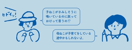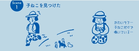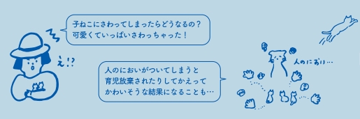また、子ねこを触ってしまうと、人間のにおいがついてしまい、育児放棄にに繋がり