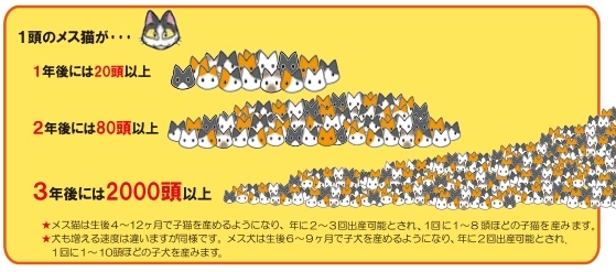 試算上は、1頭のメス猫が、3年後にはで2000頭以上に増えてしまうとも言われています。