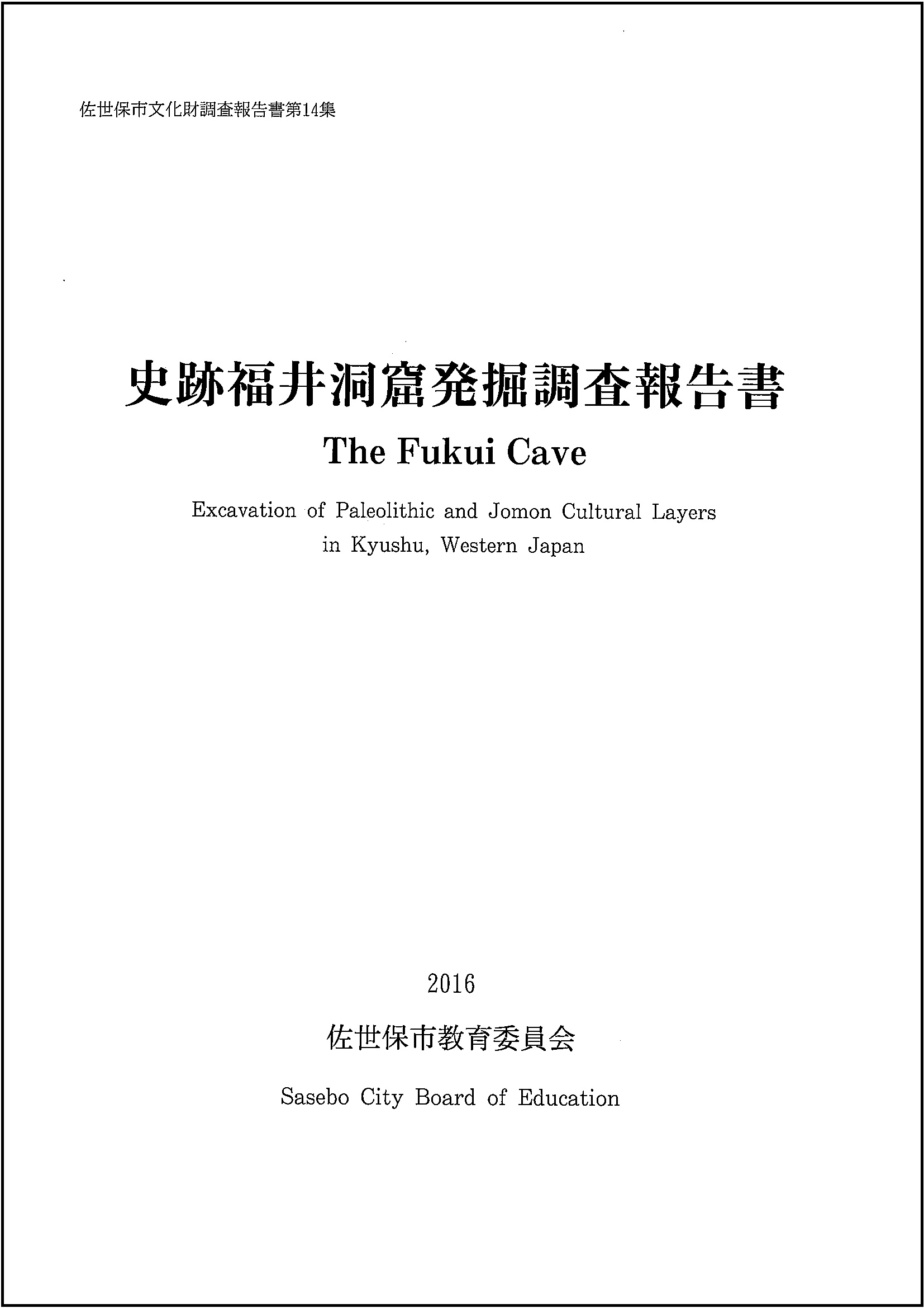 - 「史跡福井洞窟発掘調査報告書」(佐世保市文化財調査報告書第14集)について(再販売中)
