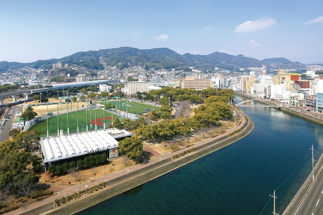 明治19年の佐世保鎮守府設置を契機に、翌年から本格的な市街地の建設が始まりました。当時はまだ佐世保川に橋が架かっておらず、飛び石伝いで対岸と往来していました。明治23年6月には橋面に土をかけてならした木造の佐世保橋が完成しましたが、その後大雨の度に何度も流失しそうになり、明治37年6月の大洪水で流失しました。その後、明治39年に当時日本最長の鉄筋コンクリートの佐世保橋が完成し、昭和14年には県内一の交通量に対応するため拡張工事が行われました。しかし、交通量が限界に達し再び架け替えられることになり、昭和60年9月に現在の佐世保橋が完成しました。