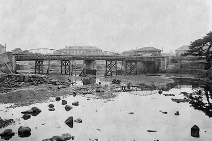 左:明治23年6月に完成した木造の佐世保橋(アーチ奥側)