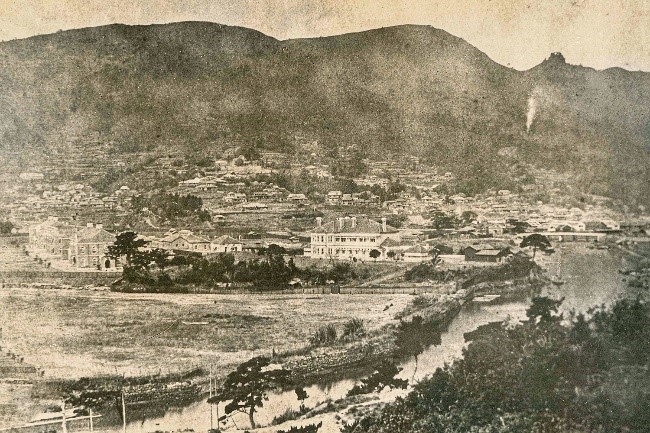 上:明治時代中期~大正時代に現在の佐世保玉屋付近から撮影された市街地
