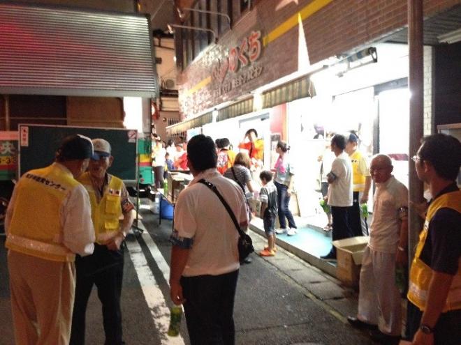 各地区の補導委員は小・中学校・高等学校の夏休みに合わせ特別補導を実施しています。地区の夏祭りや昼間の繁華街などでは、小中学生・高校生が多数見かけられ、『愛のひと声』をかけています。