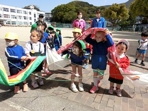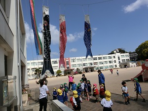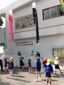 こいのぼりは、子どもたちが元気でたくましく成長しますように、という願いをこめてあげるそうです。幼稚園という集団生活を通して、どの子も自分らしく成長していってほしいな、と思います。