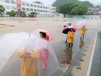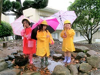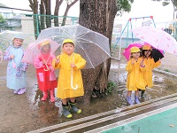 「雨の日散歩、楽しかった!」「また行きたい!」という声もあれば、「早く砂場やブランコで遊びたい!」の声も。いろいろな遊びの楽しさを感じたり、身近な自然や環境に触れ、新しい発見に感動したりしてほしいと思います。