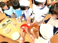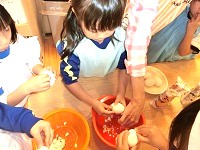 10月23日(月曜日)は、併設の白南風小学校が運動会の振り替え休業日のため、幼稚園は給食がありませんでした。ということは、子どもたちのお楽しみ、幼稚園でクッキングをして、パーティーが開催できる日です!