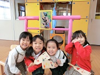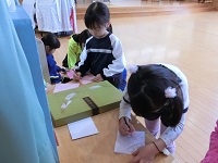 先日、近所の神社まで初詣に行った子どもたち。幼稚園でも神社を作って初詣ごっこをしようという話になりました。