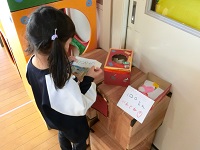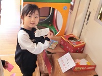 「お金を入れる箱も!」適当な大きさの段ボールに画用紙を貼って、穴をあけて…
