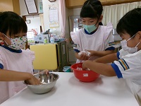 司会や進行、誕生月の友達へのインタビューなど、ドキドキしながらも子どもたち自身で進めていくことができるようになってきました。誕生表のロケットを打ち上げたら、今月のおたのしみ「お団子パーティー」の準備に取り掛かります。