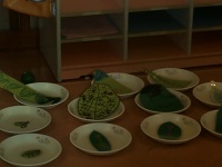 お団子パーティー当日を迎えるまでに少しずつ準備を進めていたかがやき組。「家でお団子作ったことあるよ!」と、お家でお母さんに作り方を聞いて、皆に説明してくれる子もいれば、「お団子って、葉っぱのお皿に乗ってるよね!」という意見から、葉っぱのお皿制作が始まったり、お団子のトッピングは何がいいか、年中組や年少組の友達、先生たち一人一人にインタビューに行ったり…。