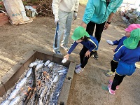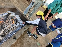 毎年、焼き芋名人さんを幼稚園にお招きし、たき火の準備や焼き加減などのお手伝いをしていただいています。