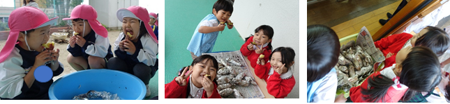 口に頬張ると「あまぁ~い!」とにこにこ顔。「焼き芋名人さん、ありがとう‼」と、感謝の気持ちも忘れず伝えていた子どもたちでした。