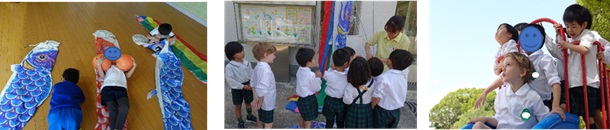 5月といえば“こいのぼり”。…ということで、白南風幼稚園でもこいのぼりをあげることにしました。