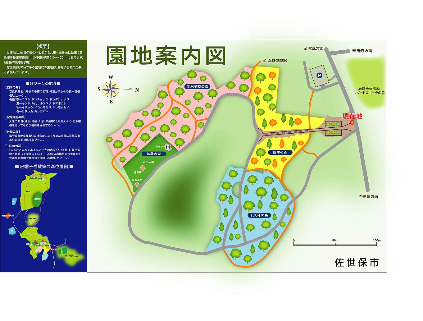 佐世保市民が森林に親しみ、森林の恵みとふれあう空間を提供し、市民の健康増進と森林・林業の公益性の啓蒙普及を図ることを目的に整備された、森林公園です。