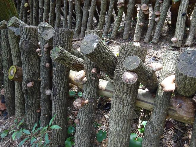 原木種駒打ち、榾木(ほだぎ)の枕木への設置等のきのこ栽培体験施設として利用されています。