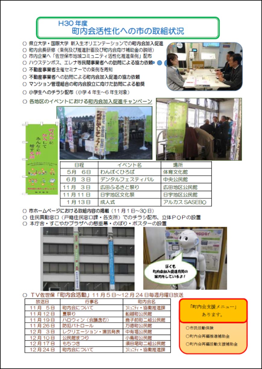 平成30年度の町内会活性化や加入促進に向けた取組状況について記載しています。