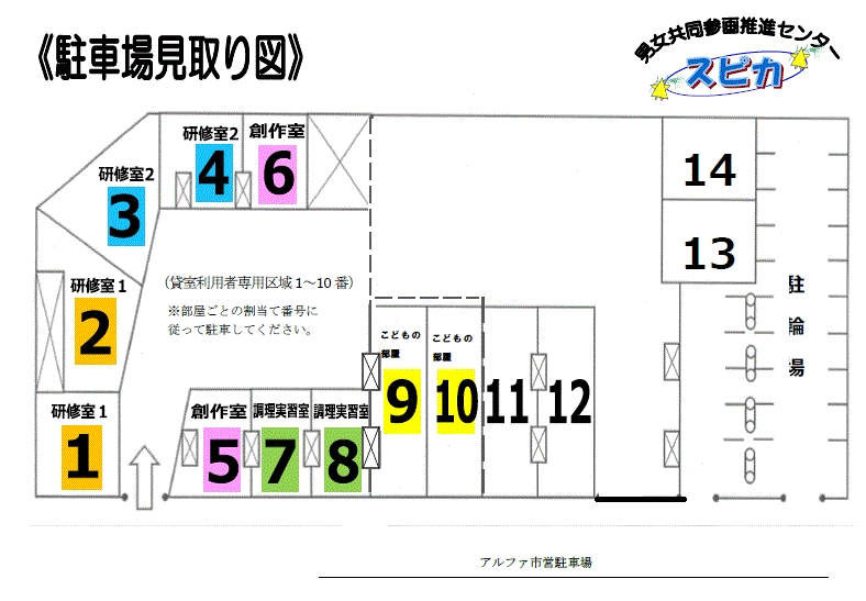 貸室利用の場合、1室につき2台の駐車場がご利用できます。(1室2台まで)