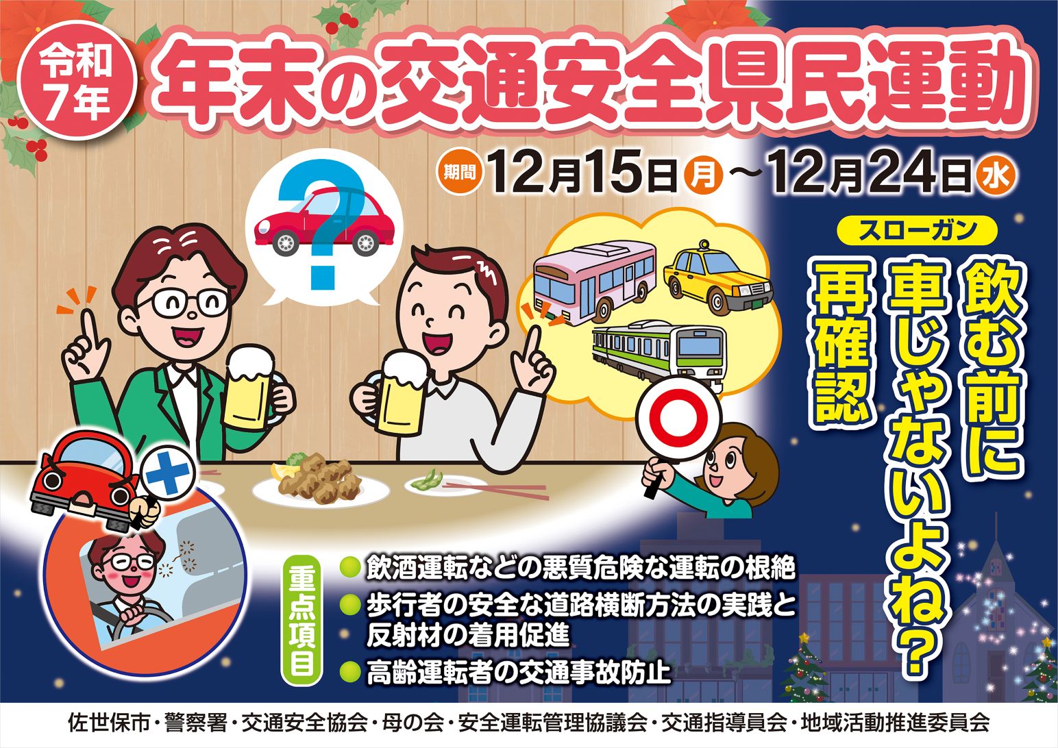 佐世保市においても、年末の交通安全県民運動期間中は街頭指導や広報車での広報啓発活動など様々な取り組みを通して交通安全の啓発運動を行います。