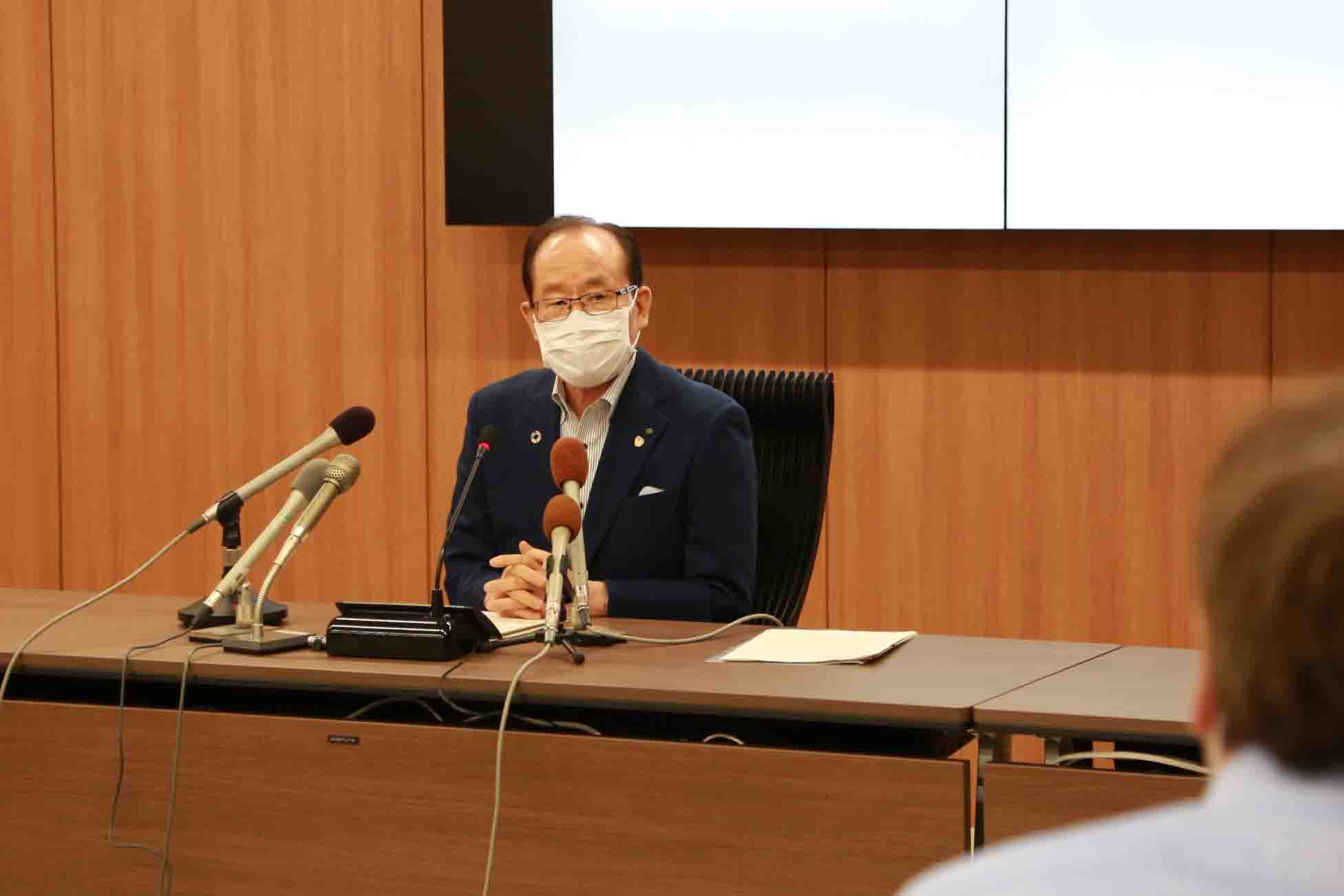 <9月24日> 定例記者会見で記者からの質問に答える市長 |