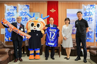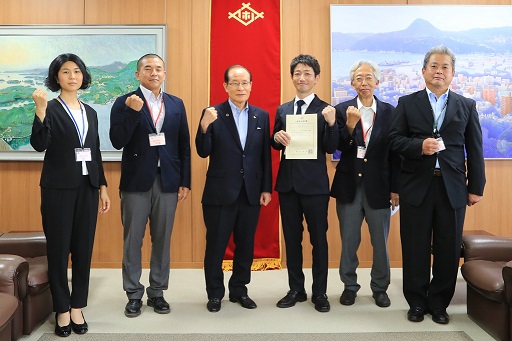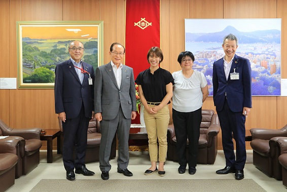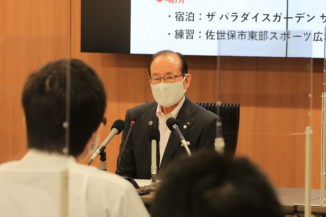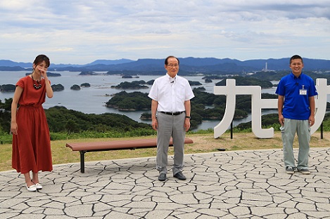 | <7月18日> 8月放送の市政広報テレビ番組「キラっ都させぼ」の収録に臨む市長 |