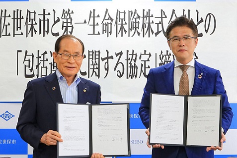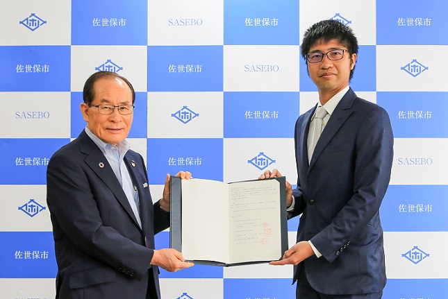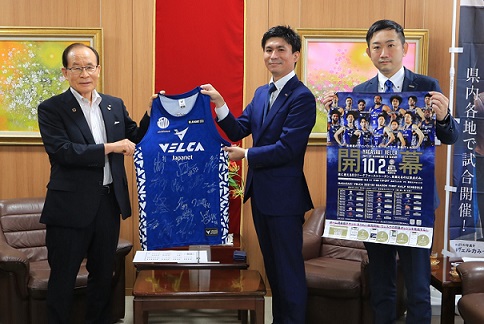 | <9月28日> 2021-22シーズンのB3リーグ(バスケットボール)開幕に向けたあいさつに市役所を訪れた株式会社長崎ヴェルカの関係者と市長 |