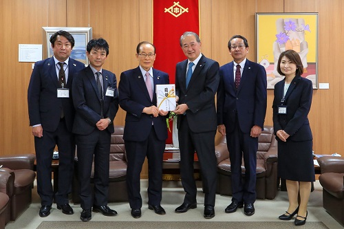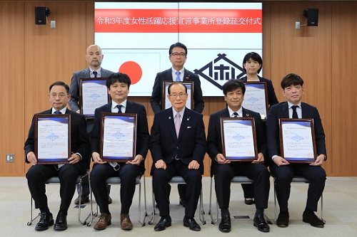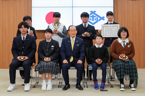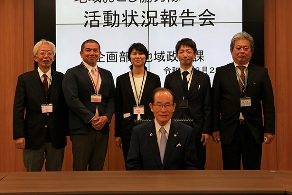 | <3月28日> 佐世保市地域おこし協力隊の活動状況報告会に出席し、隊員の皆さんと記念撮影をする市長 |