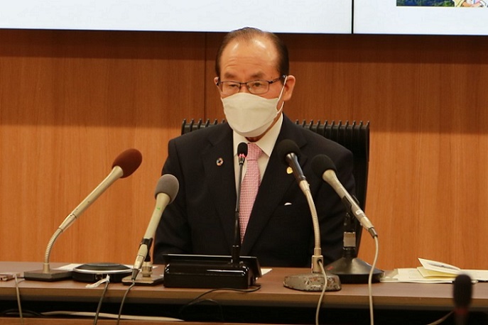 <3月29日> 定例記者会見で記者からの質問に答える市長 |