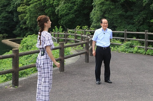 9月放送の市政広報テレビ番組「キラっ都させぼ」の収録に臨む市長