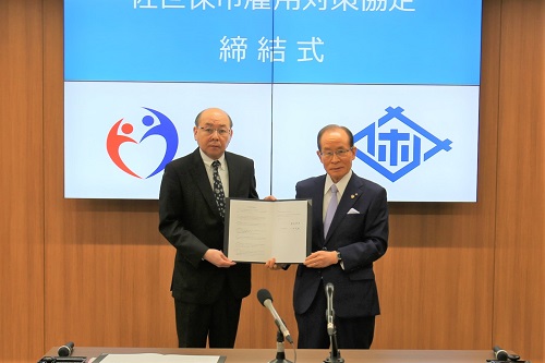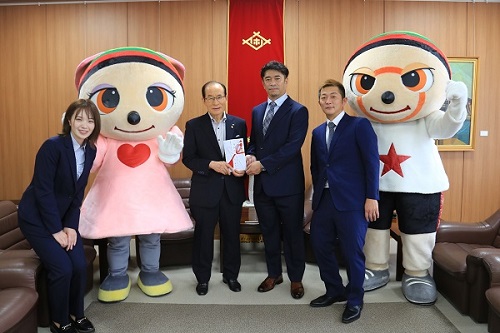 日本競輪選手会長崎支部寄付金贈呈のために市役所を訪れた日本競輪選手会長崎支部の皆さんと市長