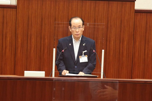 水を大切にする日2022石木ダム建設促進大会であいさつをする市長