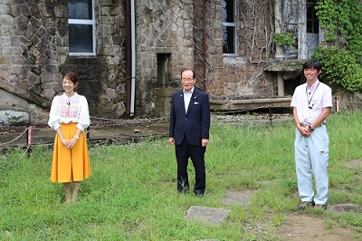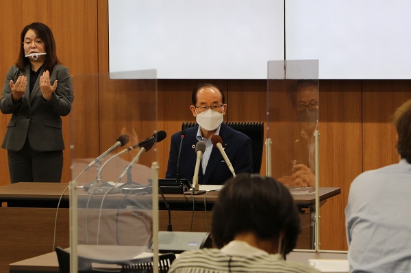 10月放送の市政広報テレビ番組「キラっ都させぼ」の収録に臨む市長
