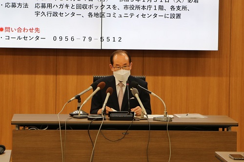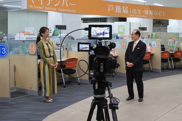 11月放送の市政広報テレビ番組「キラっ都させぼ」の収録に臨む市長