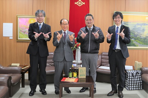 「ロコモチャレンジ!推進協議会」の事業として、佐世保市において実証実験を行うことについての概要説明とPRのため、市役所を訪れた関係者の皆さんと市長