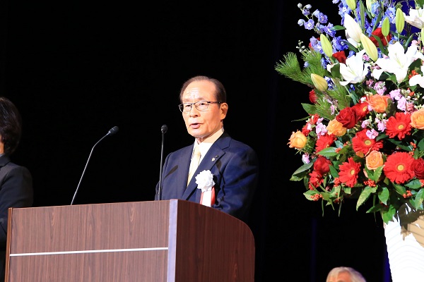 成人式典で式辞を述べる市長