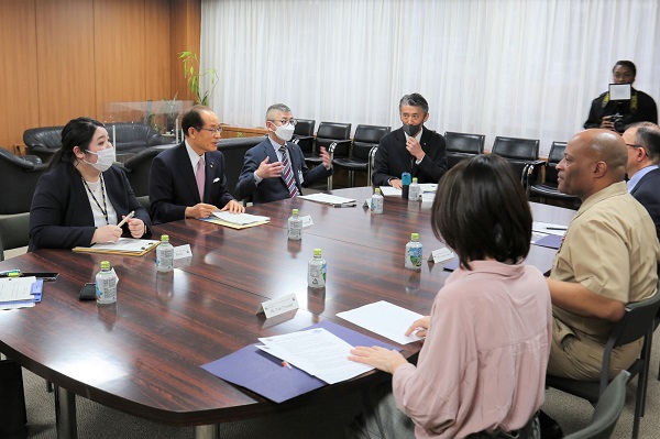 米海軍基地司令官と顔の見える関係づくりを進めるため、意見・情報交換をする市長