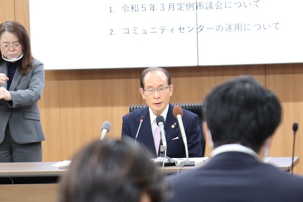 3月放送で最後の市政広報テレビ番組「キラっ都させぼ」の収録に臨む市長
