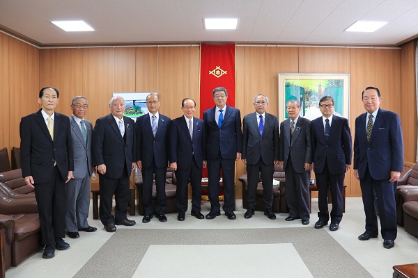 意見交換会を行うため市役所を訪れた東部地区自治協議会連絡協議会の皆さんと市長