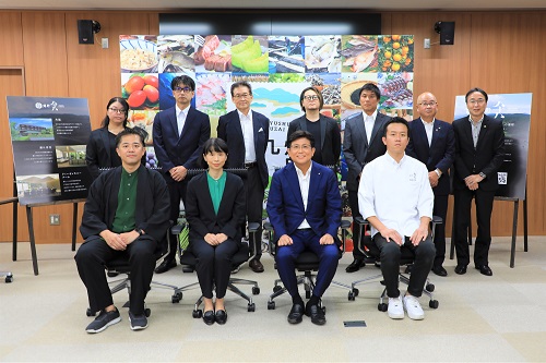 10月1日開業予定の「嬉野八十八(やどや)」における食材に、西九州食財が採用されたことの報告およびPRに市役所を訪れた生産者等関係者の皆さんと市長