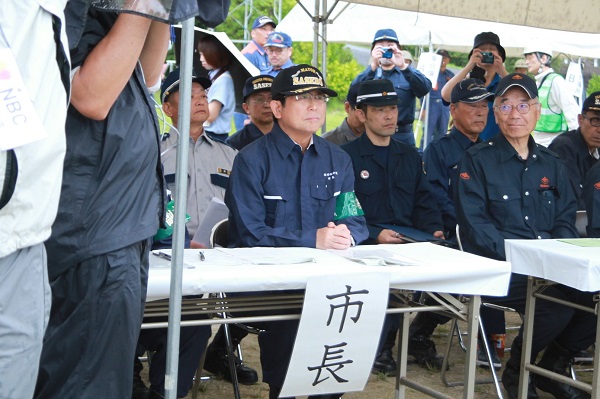 陸上自衛隊相浦駐屯地で開催された「佐世保市総合防災訓練」に参加する市長